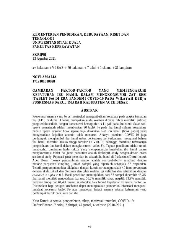 Baca Juga : GAMBARAN FAKTOR-FAKTOR YANG MEMPENGARUHI KEPATUHAN IBU HAMIL DALAM MENGKONSUMSI ZAT BESI (TABLET FE) DI ERA PANDEMI COVID-19 PADA WILAYAH KERJA PUSKESMAS DARUL IMARAH KABUPATEN ACEH BESAR (Novi Amalia, 2021)