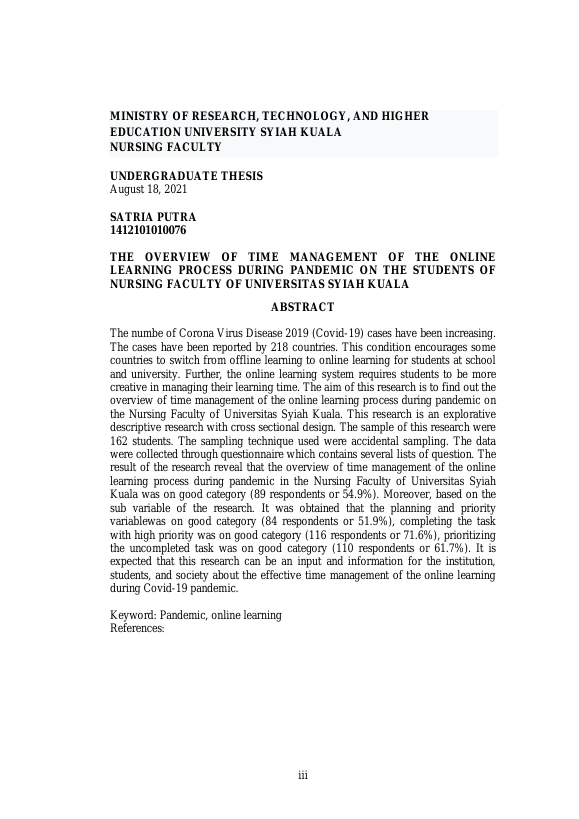 Baca Juga : GAMBARAN TINGKAT ADAPTASI MAHASISWA BARU TERHADAP PEMBELAJARAN AKADEMIK SECARA DARING PADA UNIVERSITAS SYIAH KUALA (LORENI, 2021)