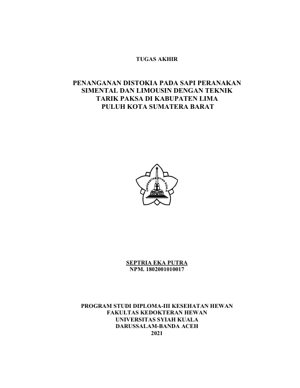Baca Juga : PENANGANAN RETENSIO PLASENTA PADA SAPI SIMMENTAL DI KABUPATEN LIMAPULUH KOTA (NADYA KEMALA, 2020)