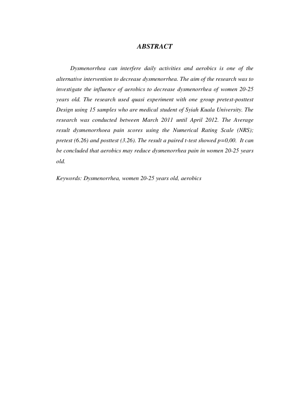 Baca Juga : HUBUNGAN INDEKS MASSA TUBUH, USIA MENARCHE, DAN AKTIVITAS FISIK DENGAN DYSMENORRHEA PRIMER PADA WANITA (Diva Riamilda Irianto, 2017)