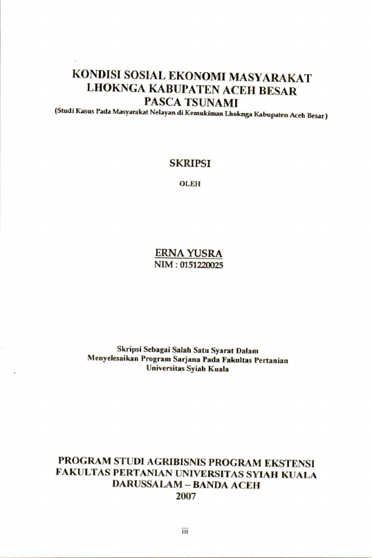 Baca Juga : KONDISI SOSIAL EKONOMI PETANI PASCA TSUNAMI DI KEMUKIMAN LHOKNGA KECAMATAN LHOKNGA KABUPATEN ACEH BESAR (Uswatun Khairah, 2020)