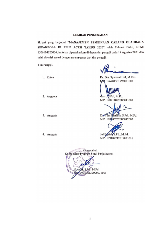 Baca Juga : MANAJEMEN PEMBINAAN CABANG OLAHRAGA SEPAKBOLA EKSTRA KURIKULER DI SD SE KECAMATAN ULEE KARENG KOTA BANDA ACEH (TONIRO JAYA, 2021)