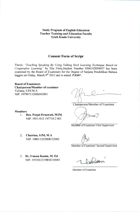 Baca Juga : THE IMPLEMENTATION OF TALKING CHIPS TECHNIQUERNAS COOPERATIVE LEARNING IN IMPROVING THE STUDENTS’ SPEAKING ABILITY RN(AN EXPERIMENTAL STUDY AT THE SECOND GRADE OF SMPN 8 BANDA ACEH) (Cut Rina Yustisia, 2014)