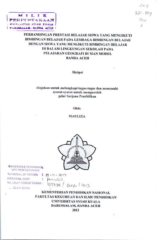 Baca Juga : PERBEDAAN KEMANDIRIAN BELAJAR SISWA YANG MENGIKUTI BIMBINGAN BELAJAR DENGAN YANG TIDAK MENGIKUTI BIMBINGAN BELAJAR DI SMP NEGERI 2 BANDA ACEH (SUATU PENELITIAN KUANTITATIF DI SMP NEGERI 2 BANDA ACEH) (RIFQIL FUAD, 2016)