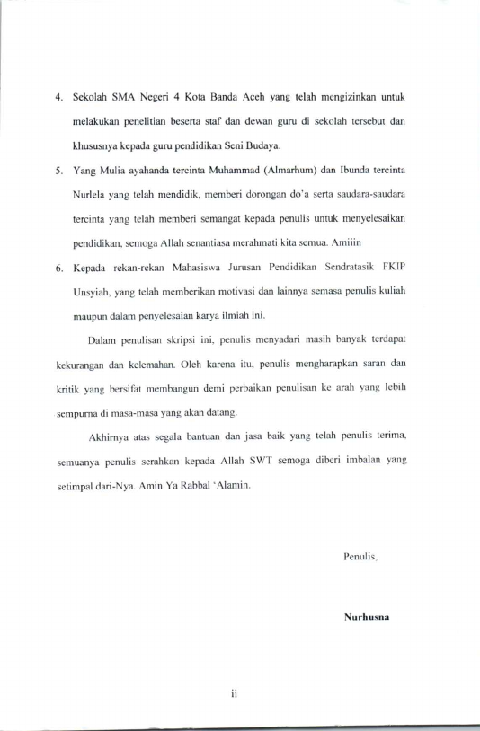 Nur Husna, PELAKSANAAN KURIKULUM TINGKAT SATUAN PENDIDIKAN (KTSP) PELAJARAN SENI BUDAYA PADA SMA NEGERI 4 KOTA BANDA ACEH. Banda Aceh Fakultas Keguruan dan Ilmu Pendidikan,2021
