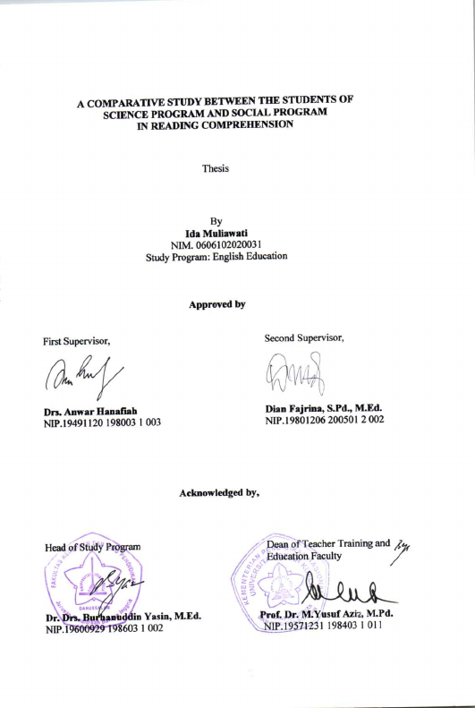 Baca Juga : STUDENTS’ ACHIEVEMENTS ON THE USE OF RECIPROCAL TEACHING METHOD IN READING COMPREHENSION (A QUALITATIVE STUDY AT SMAN 6 BANDA ACEH) (Putri Ace Riaula Ramadhona, 2015)