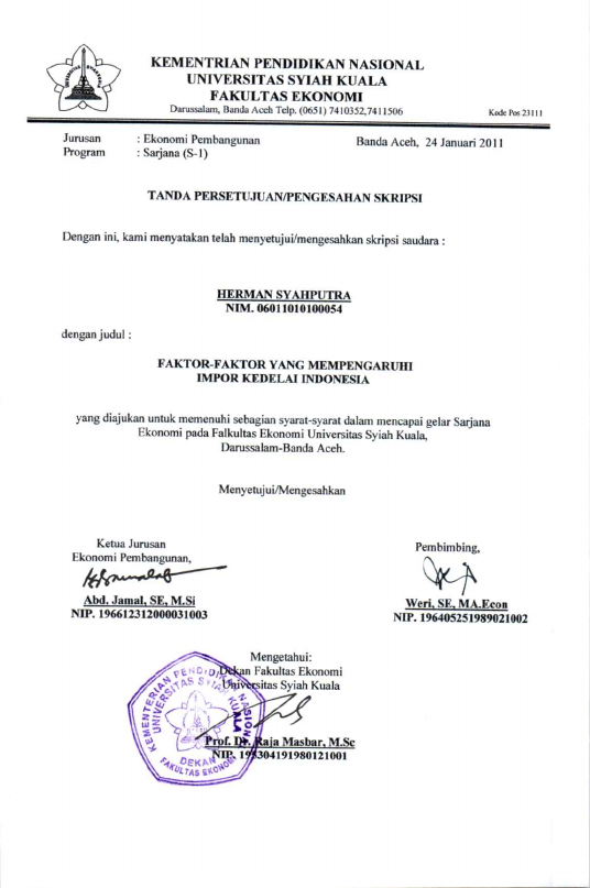 Herman Syahputra, FAKTOR-FAKTOR YANG MEMPENGARUHI IMPOR KEDELAI INDONESIA. Banda Aceh Fakultas Ekonomi,2011