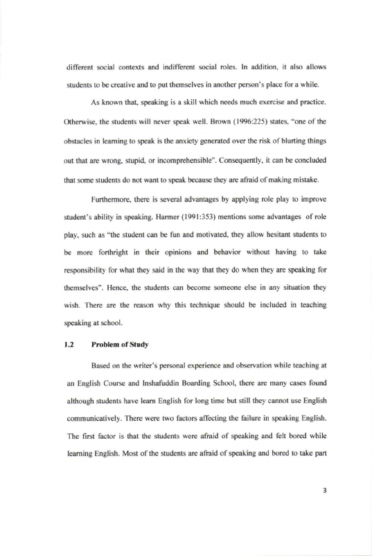 Baca Juga : TEACHING SPEAKING BY USING ROLE PLAY TECHNIQUE (AN EXPERIMENTAL RESEARCH AT SECOND YEAR STUDENTS OF SMP INSHAFUDDIN, BANDA ACEH) (MUTIA RAHMAH, 2014)