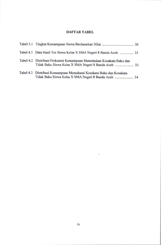 Mila Sartika, KEMAMPUAN SISWA KELAS X SMA NEGERI 8 BANDA ACEH MENENTUKAN KOSAKATA BAKU DAN KOSAKATA TIDAK BAKU BAHASA INDONESIA. Banda Aceh Fakultas Keguruan dan Ilmu Pendidikan,2010