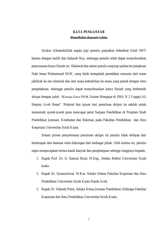 MUHAMMAD HAIKAL, KINERJA GURU PJOK DALAM MENGAJAR DI SMA NEGERI 2 UNGGUL ALI HASJMY ACEH BESAR. Banda Aceh Fakultas KIP,2021