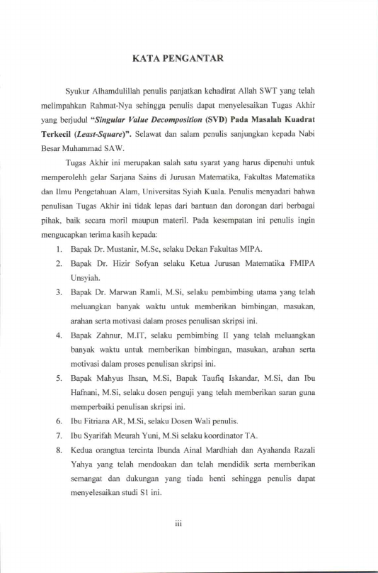 Naziatul Akmal, SINGULAR VALUE DECOMPOSITION(SVD) PADA MASALAH KUADRAT TERKECIL (LEAST-SQUARE). Banda Aceh Fakultas Matematika dan Ilmu Pengetahua,2011