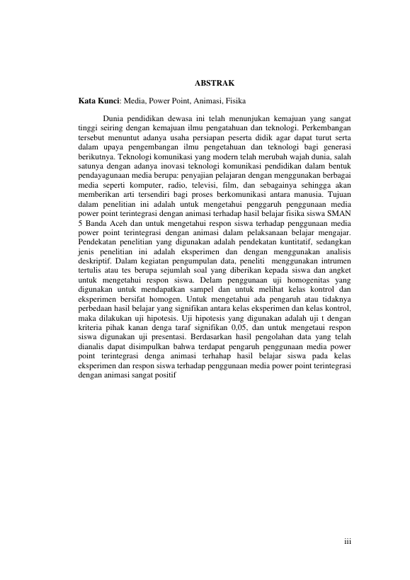 Baca Juga : PENGARUH PENGGUNAAN MEDIA PEMBELAJARAN ANIMASI TERHADAP HASIL BELAJAR SISWA KELAS XII SMA NEGERI 9 BANDA ACEH PADA MATERI GELOMBANG CAHAYA (RAMAWATI ALFI DWI PUTRI, 2016)
