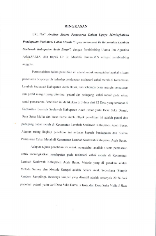 Erlina, ANALLSIS SISTEM PEMASAARAN DALAM UPAYA MENINGKATKAN PENDAPATAN USAHA TANI CABAL MERAH (CAPSICUM ANNUM) DI KECAMATAN LEMBAH SEULAWAH KABUPATEN ACEH BESAR. Banda Aceh Fakultas Pertanian,2007