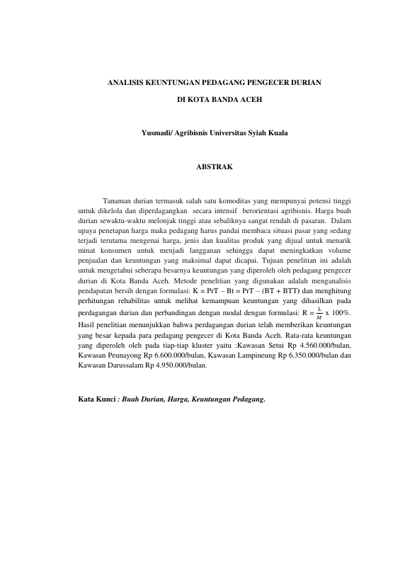 Baca Juga : ANALISIS KEUNTUNGAN DAN PROFIT MARGIN PEDAGANG BESAR DAN PEDAGANG PENGECER JERUK KEPROK DI KOTA BANDA ACEH (IRFAN, 2020)
