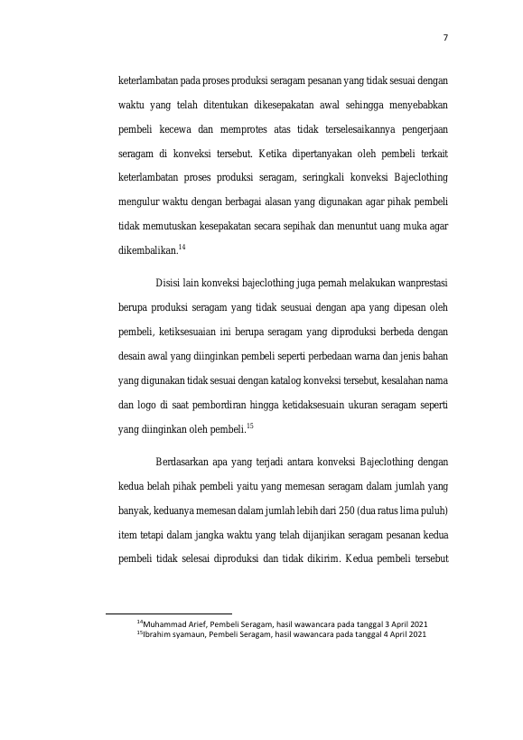 Muhammad Roni, WANPRESTASI DALAM PELAKSANAAN PERJANJIAN JUAL BELI SERAGAM DI KONVEKSI BAJECLOTHING. Banda Aceh Fakultas Hukum,2021