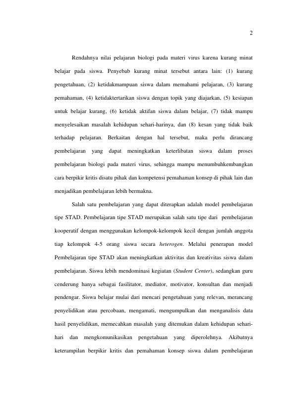 Nurhayati, PENINGKATAN HASIL BELAJAR SISWA PADA MATERI VIRUS MELALUI MODEL PEMBELAJARAN STUDENT TEAMS ACHIEVEMENT DIVISION (STAD) DI KELAS X SMA RUHUL ISLAM KABUPATEN ACEH UTARA. Banda Aceh Fakultas Keguruan dan Ilmu Pendidikan,2014
