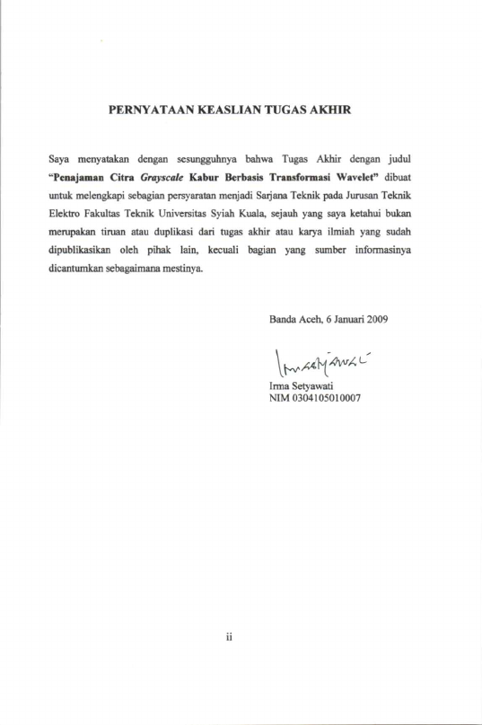 Irma Setyawati, PENAJAMAN CITRA GRAYSCALE KABUR BERBASIS TRANSFORMASI WAVELET. Banda Aceh Fakultas Teknik Elektro,2009