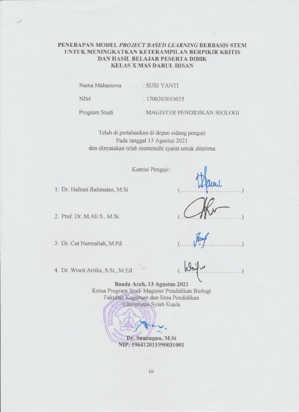 Baca Juga : PENGARUH MODEL PEMBELAJARAN PROJECT BASED LEARNING BERBASIS STEM TERHADAP KEMAMPUAN BERPIKIR KRITIS FISIKA PADA SISWA MAN 3 BANDA ACEH (Anggi Safitri, 2024)
