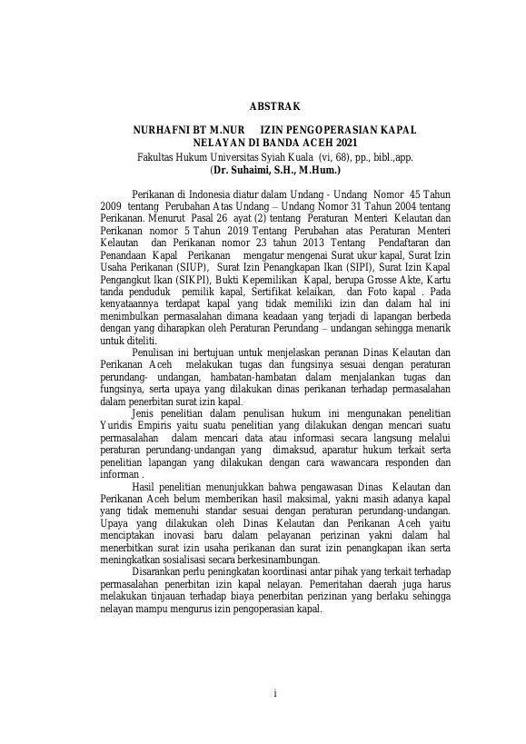Nurhafni Bt M. Nur, IZIN PENGOPERASIAN KAPAL NELAYAN DI BANDA ACEH. Banda Aceh Fakultas Hukum,2021