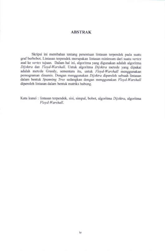 Basrul, STUDY IMPLEMENTASI ALGORITMA DIJKSTRA DAN FLOYD-WARSHALL DALAM PENENTUAN LINTASAN TERPENDEK PADA SUATU GRAF BERBOBOT. Banda Aceh Fakultas Matematika dan Ilmu Pengetahuan Alam,2009