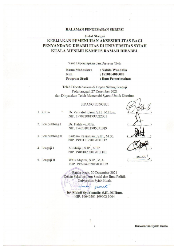 Baca Juga : KEBIJAKAN PEMENUHAN AKSESIBILITAS BAGI PENYANDANG DISABILITAS DI UNIVERSITAS SYIAH KUALA MENUJU KAMPUS RAMAH DIFABEL (NABILA WANDALIA, 2021)