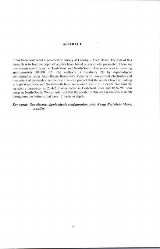 Fitriani, STUDI KEDALAMAN LAPISAN AKUIFER MENGGUNAKAN METODA GEOLISTRIK 2-D KONFIGURASI DIPOLE-DIPOLE DI DESA LADONG ACEH BESAR. Banda Aceh Fakultas Matematika dan Ilmu Pengetahuan Alam,2006
