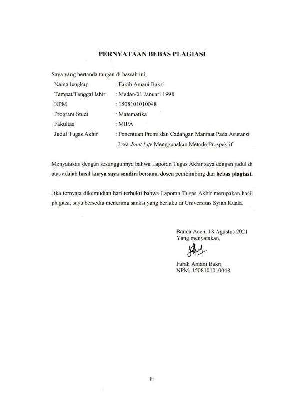 Baca Juga : PENENTUAN CADANGAN PREMI ASURANSI JIWA JOINT LIFE BERJANGKA MENGGUNAKAN METODE CANADIAN (Cut Nurjihan Aisya, 2024)