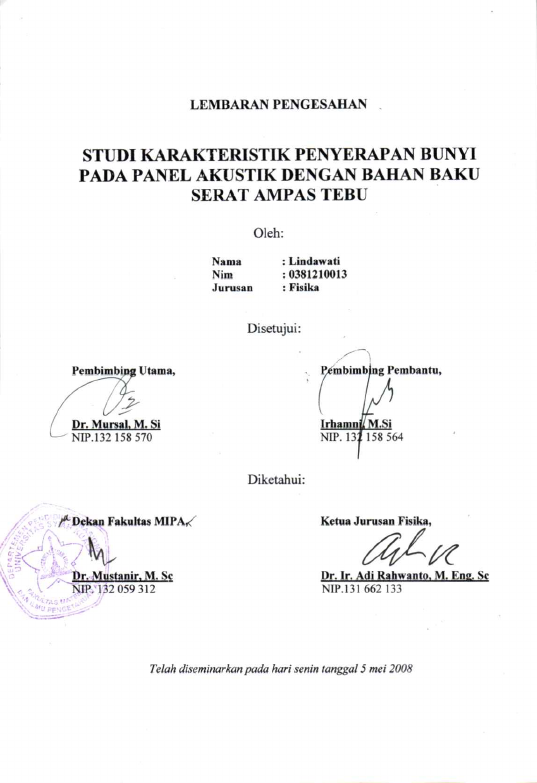 Baca Juga : PEMANFAATAN SERAT TEBU (SACHARUM OFFINARUM) UNTUK PEMBUATAN PANEL PENYERAP BUNYI (Rahmad Fajri, 2023)
