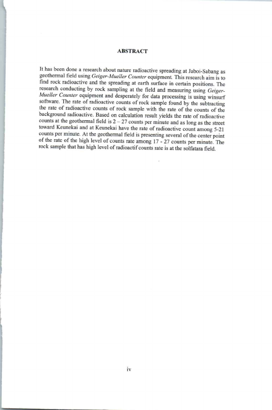 Lia Nazia, SEBARAN RADIOAKTIF ALAM PADA LAPANGAN PANAS BUML JABOI SABANG MENGGUNAKANRNGEIGER-MUELLER COUNTER. Banda Aceh Fakultas Matematika dan Ilmu Pengetahuan Alam,2005