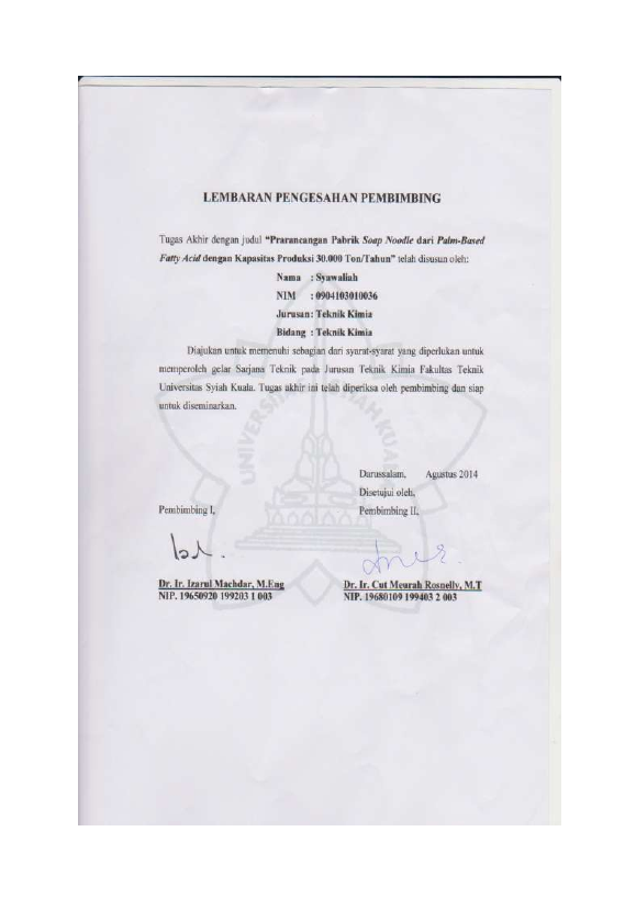 Baca Juga : PRARANCANGAN PABRIK SOAP NOODLE DARI PALM BASED FATTY ACIDS DENGAN KAPASITAS PRODUKSI 30.000 TON PER TAHUN (SYAWALIAH, 2014)