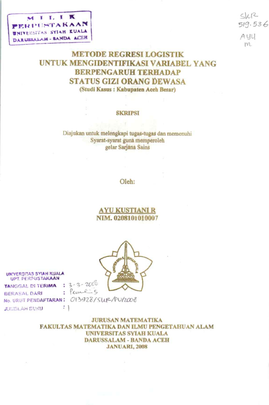 Baca Juga : PENGKLASIFIKASIAN MASA STUDI MAHASISWA S1 FMIPA UNSYIAH MENGGUNAKAN REGRESI LOGISTIK ORDINAL (Mailani, 2016)