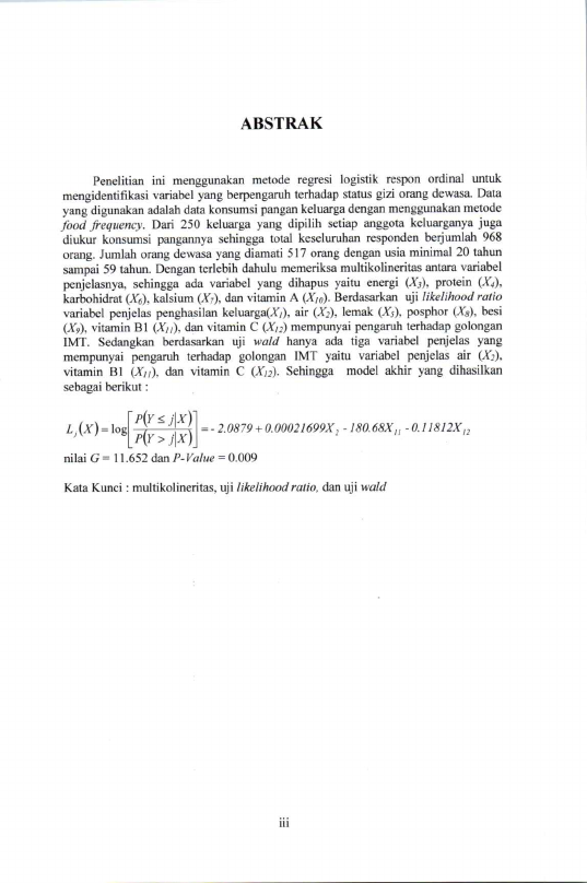 Baca Juga : IDENTIFIKASI FAKTOR-FAKTOR YANG MEMENGARUHI STATUS GIZI REMAJA DI KABUPATEN ACEH BESAR MENGGUNAKAN ANALISIS REGRESI LOGISTIK ORDINAL (RINA ARISKA, 2023)