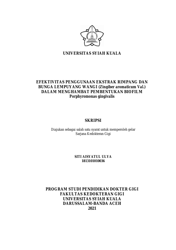 Baca Juga : PERBANDINGAN KEMAMPUAN ANTIBAKTERI EKSTRAK RIMPANG DAN BUNGA LEMPUYANG WANGI (ZINGIBER AROMATICUM VAL.) TERHADAP PORPHYROMONAS GINGIVALIS PENYEBAB PERIODONTITIS SECARA IN VITRO (SOFIE NASTITI, 2022)