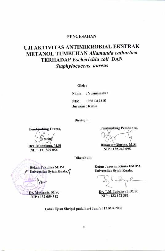 Baca Juga : UJI AKTIVITAS ANTIMIKROBIAL EKSTRAK N-HEKSANA BEBERAPA TUMBUHAN YANG ADA DI PROVINSI ACEH TERHADAP ESCHERICHIA COLI DAN STAPHYLOCOCCUS AUREUS (Eva Zainius Wartini, 2022)