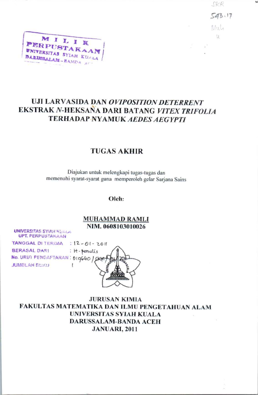 Baca Juga : UJI LARVASIDA DAN OVIPOSITION DETERRENT EKSTRAK N-HEKSANA DARI BATANG VITEX TRIFOLIA TERHADAP NYAMUK AEDES AEGYPTI (Muhammad Ramli, 2022)
