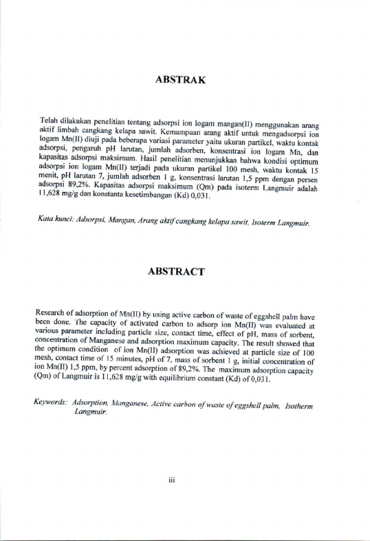 Baca Juga : ADSORPSI ION LOGAM BESI (FE) MENGGUNAKAN ABU LIMBAH CANGKANG KELAPA SAWIT (Noni Daviana, 2022)
