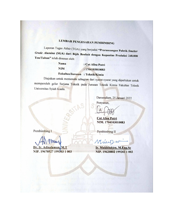 Baca Juga : PRARANCANGAN PABRIK SMELTER GRADE ALUMINA DENGAN PROSES BAYER KAPASITAS PRODUKSI 186.500 TON/TAHUN (Baihaqi, 2024)