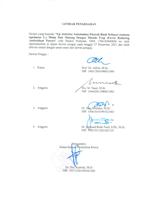 Baca Juga : UJI AKTIVITAS ANTIOKSIDAN DAN TOKSISITAS EKSTRAK SERTA FRAKSI DIKLOROMETANA DAUN SRIKAYA (ANNONA SQUAMOSA L.) (TEUKU IVAN AULIANSYAH, 2025)