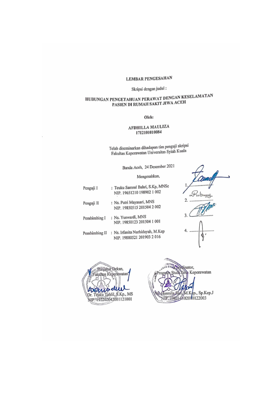 AFDHILLA MAULIZA, HUBUNGAN PENGETAHUAN PERAWAT DENGAN KESELAMATAN PASIEN DI RUMAH SAKIT JIWA ACEH. Banda Aceh Fakultas Keperawatan,2022