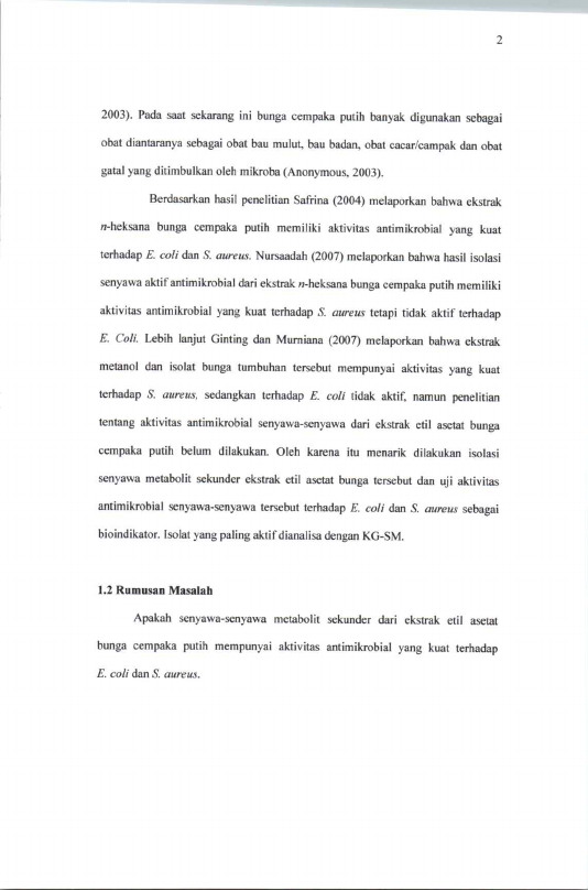 Baca Juga : AKTIVITAS ANTIMIKROBIAL SENYAWA METABOLIT SEKUNDER EKSTRAK METANOL KULIT BATANG KAMBOJA PUTIH (PLUMERIA ALBA) (Saddam, 2022)
