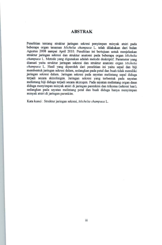 Rizki Amalia Farsa, KAJIAN STRUKTUR JARINGAN SEKRESI PENYIMPAN MINYAK ATSIRI PADA ORGAN TANAMAN CEMPAKA KUNING (MICHELIA CHAMPACA L.). Banda Aceh Fakultas Matematika dan Ilmu Pengetahuan Alam,2010