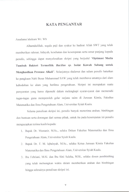 Ika Fitriani, OPTIMASI MEDIA TUMBUH BAKTERI TERMOFILIKRNBACILLUS SP. ISOLAT KAWAH SABANG UNTUK MENGHASILKAN PROTEASE ALKALI. Banda Aceh Fakultas Matematika dan Ilmu Pengetahuan Alam,2007