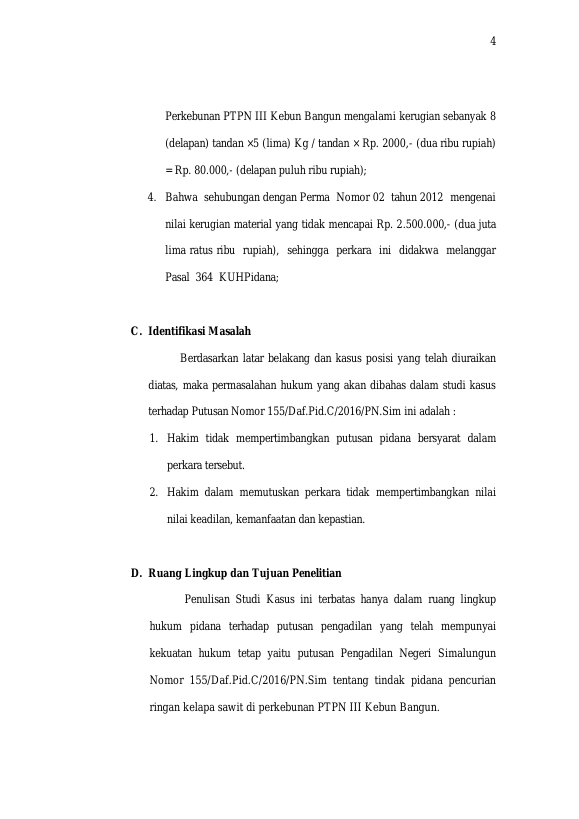 MUHAMMAD RIVANDI AGUSTIAN, STUDI KASUS PUTUSAN PENGADILAN NEGERI SIMALUNGUN NOMOR 155/DAF.PID.C/2016/PN.SIM TENTANG TINDAK PIDANA PENCURIAN RINGAN KELAPA SAWIT DI PERKEBUNAN PTPN III KEBUN BANGUN. Banda Aceh Fakultas Hukum,2022