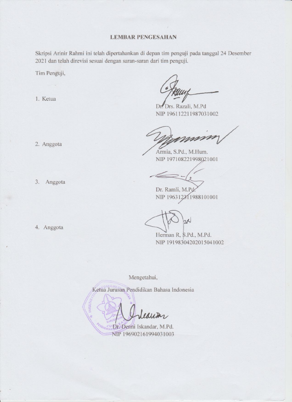 ARINIR RAHMI, EFEKTIVITAS PEMBELAJARAN DARING MATA PELAJARAN BAHASA INDONESIA SISWA KELAS XI SMK NEGERI 4 MEULABOH. Banda Aceh Fakultas KIP Bahasa Indonesia,2022