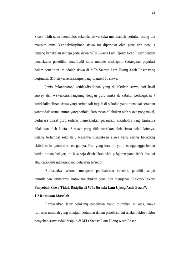 Yulia, FAKTOR-FAKTOR PENYEBAB SISWA TIDAK DISIPLIN DI MTS SWASTA LAM UJONG ACEH BESAR. Banda Aceh Fakultas KIP Bimbingan dan Konseling,2022
