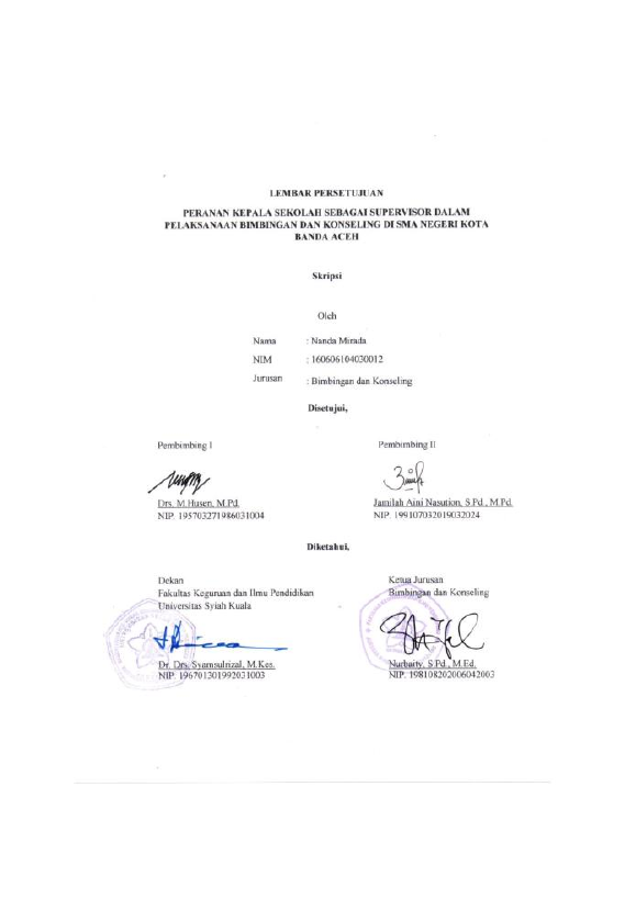 Baca Juga : PELAKSANAAN SUPERVISI PENDIDIKAN OLEH KEPALA SEKOLAH DALAM MENINGKATKAN KOMPETENSI PROFESIONAL GURU BIMBINGAN KONSELING DI SMP NEGERI 8 BANDA ACEH (YENNIYAR, 2016)