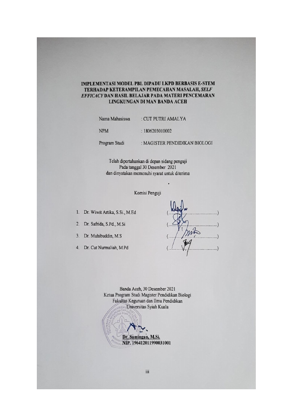 Baca Juga : IMPLEMENTASI MODEL PEMBELAJARAN PROBLEM BASED LEARNING (PBL) DIPADU DENGAN LKPD BERBASIS STEM UNTUK MENINGKATKAN KETERAMPILAN BERPIKIR KRITIS DAN MOTIVASI BELAJAR PESERTA DIDIK PADA MATERI PENCEMARAN LINGKUNGAN DI SMA NEGERI KABUPATEN BIREUEN (Zainatul Hasanah, 2020)