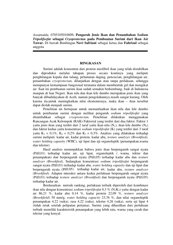 Baca Juga : SIFAT FISIK DAN KIMIA SURIMI IKAN SARDIN (SARDINELLA LONGICEPS) DENGAN JENIS BAHAN PENGIKAT (TAPIOKA DAN TERIGU) DAN VARIASI KONSENTRASI SODIUM TRIPOLIFOSFAT (Defi Eryani, 2025)