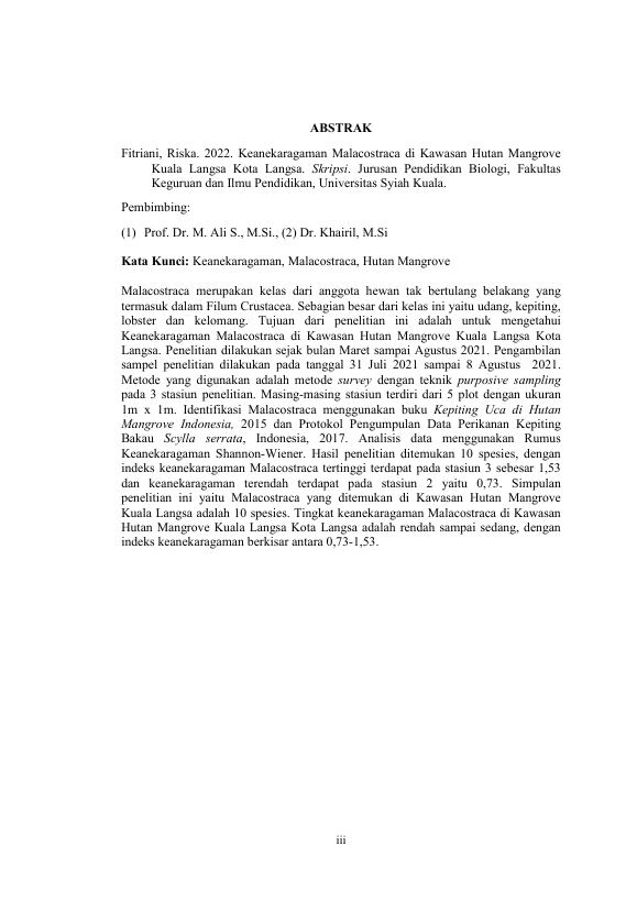 Baca Juga : PRODUKSI SERASAH HUTAN MANGROVE DI KUALA LANGSA, KECAMATAN LANGSA BARAT, KOTA LANGSA (Ridha Hafizi, 2017)