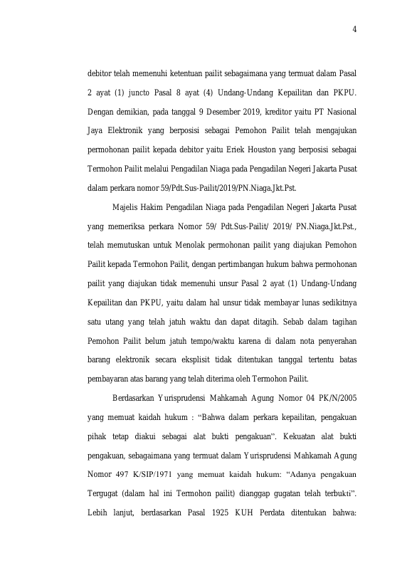 Baca Juga : STUDI KASUS PUTUSAN PENGADILAN NIAGA PADA PENGADILAN NEGERI JAKARTA PUSAT NOMOR 59/PDT.SUS-PAILIT/2019/PN.NIAGA.JKT.PST. TENTANG PENOLAKAN PERMOHONAN PAILIT AKIBAT TIDAK DITENTUKANNYA JATUH WAKTU DALAM PERJANJIAN KERJASAMA KONSINYASI (MUHAMMAD FIKRI RAHMADSYAH, 2022)